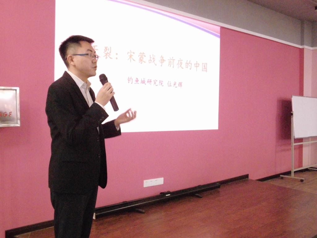 10月18日下午16时,作为三江论坛重要活动版块的学术讲座在爱莲书院音乐咖啡厅成功举办了名为:“天裂:宋蒙战争前夜的中国”的第一讲。钓鱼城研究院副院长位光辉老师担任主讲人,冯懿老师担任主持人,杜春梅老师担任评议人。