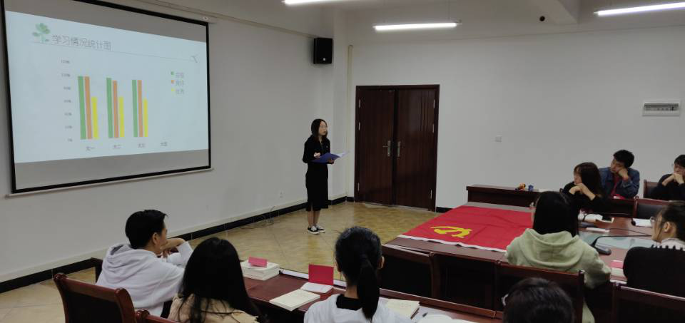 王诗颖同志在汇报中说,作为老师的我们,站在三尺讲台的时候,我们就是要教会学生读万卷书,树立正确的人生观,行好万里路,做正直人。