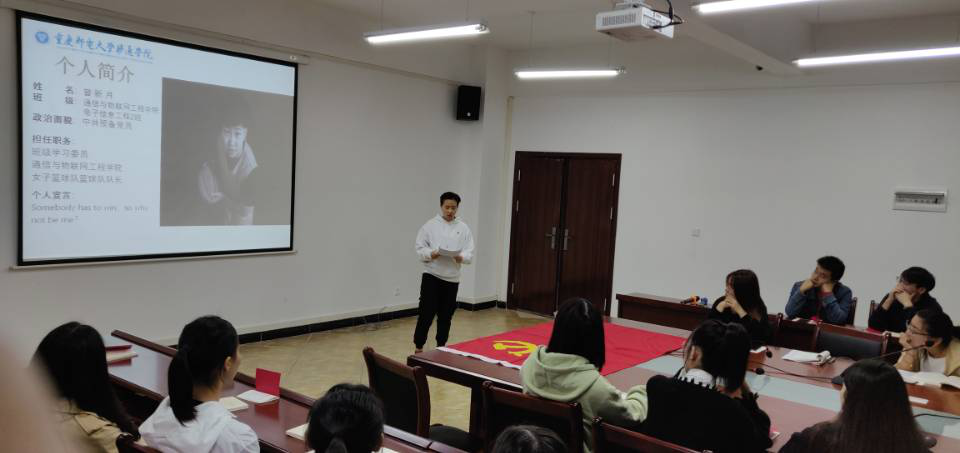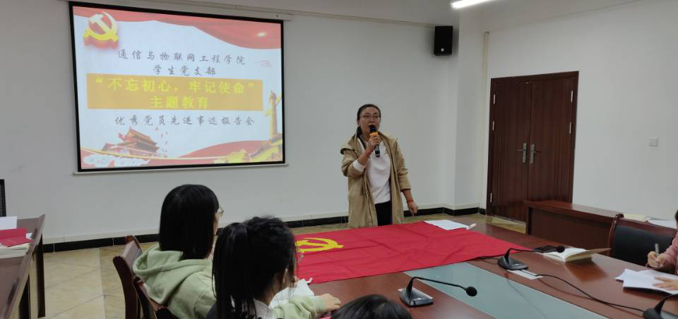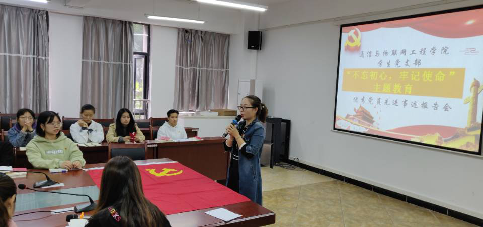 按照重庆邮电大学移通学院“不忘初心、牢记使命”主题教育工作要求,结合中国共产党建党九十八周年,为大力宣传信念坚定、对党忠诚、担当作为、敢为人先的新时代典型。近日,通信与物联网工程学院学生党支部召开了优秀党员先进事迹报告会。2019年优秀共产党员、通信与物联网工程学院辅导员张丽斌同志、王诗颖同志,2018-2019学年国家奖学金获得者,通信与物联网工程学院学生党支部陈泽翼同志(预备党员)、曾新月同志(预备党员)、姜美同志(预备党员)分别做了汇报。通信与物联网工程学院党总支副书记、副院长、学生党支部书记何燕同志,以及学生党支部全体成员参加报告会。