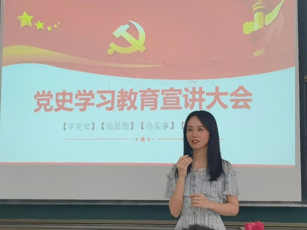 她指出,百年党史是我们党前赴后继、百折不挠、创造辉煌的奋斗史,是我们党勇于自我革命、自我重塑、自我超越的成长壮大史。一代又一代中国共产党人顽强拼搏、不懈奋斗,展现出崇高的精神品格和道德风范。她强调,一要在坚持以德修身中争做“学史崇德”的表率,要树立马克思主义世界观、人生观、价值观,把“崇德”融入到日常学习工作生活之中,严格操守和行为,切实筑牢从教底线。二要在加强以德育人中争做“学史崇德”的表率,要坚守为党育人、为国育才初心使命,把“崇德”贯彻到立德树人、教书育人具体实践中,用习近平新时代中国特色社会主义思想筑魂育人。三要在推进思政教学融入本科教学中,做好“学史崇德”的表率,要思考如何把“崇德”更好地落实到校园文化建设之中,引导师生争做良好道德风尚的建设者、社会文明进步的推动者,营造良好的道德文化生态环境。