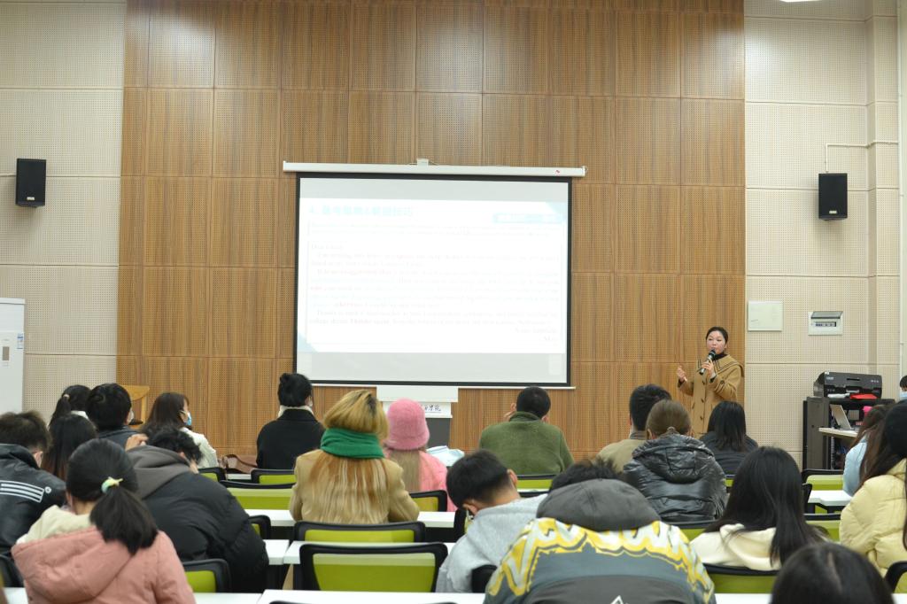 第一次主题活动于11月17日下午在天渠书院报告厅开展,张旭宁异科导师邀请财务管理4班和5班的同学积极参与了第十三届英德语言文化节之“笃学不倦”英语四六级讲座。此次讲座为同学们备战四、六级考试提供了科学、具体、有效的策略,有利于同学们发端正的心态制定科学的复习计划,增强同学们的信心。张旭宁异科导师向学生强调,四、六级考试的目的是对大学生的英语能力进行客观、准确的测量,实际上是一种水平考试,因此同学们不能再以中学的应试观去备考,而是从语言知识和能力规律出发,扎扎实实地做好语言学习的全过程。