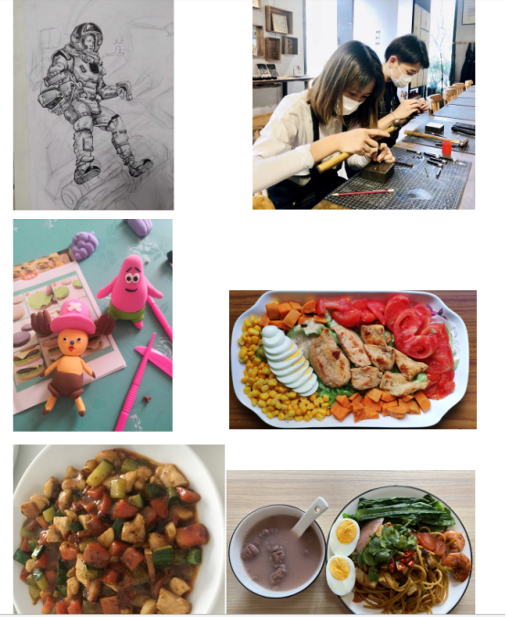 疫情期间,此次活动由线上开展,但是遥远的距离却并不能阻挡同学们参与活动的热情。5月13日,参与活动的人员便陆续将自己的成果分享出来,有折纸、捏泥人的,有烹饪美食的,有制作手工的……通过这次活动,同学们不仅增进了彼此的感情,也通过劳动使生活更加色彩斑斓。