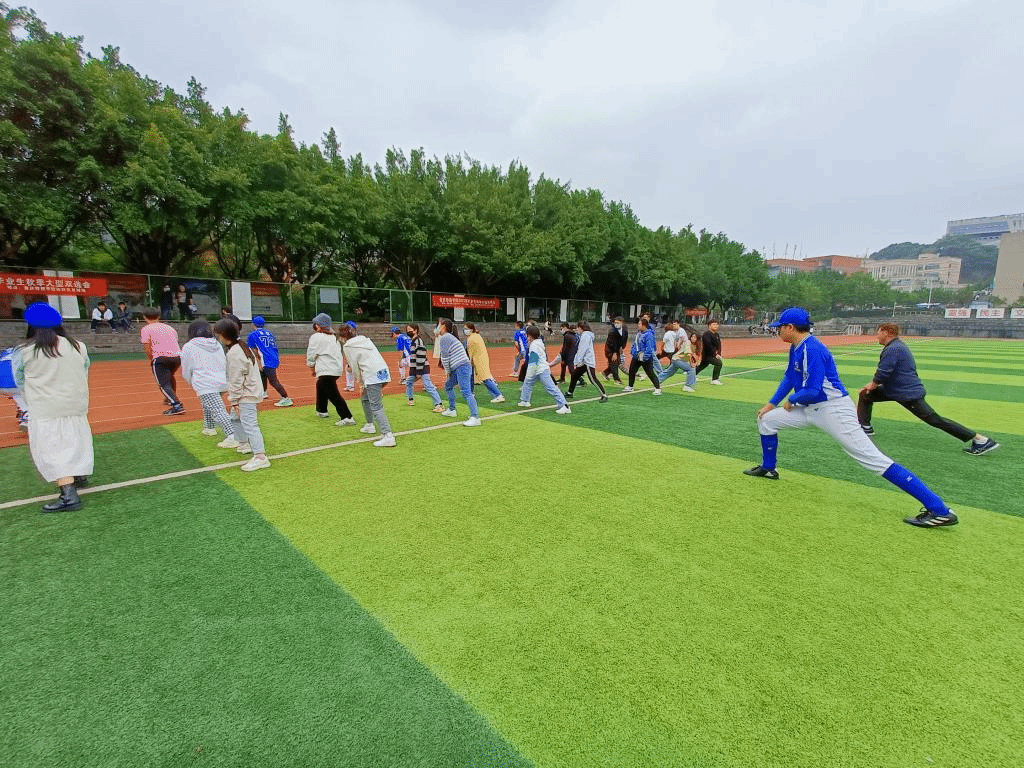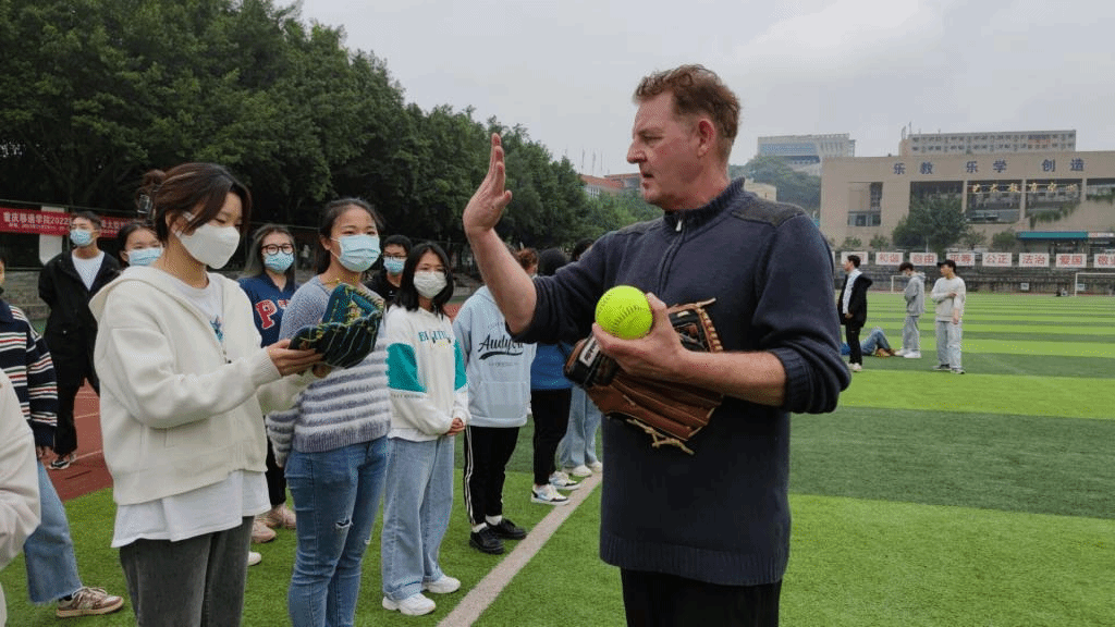 Mike现场教学时讲到,“初高中的时候棒球一直都是他的最爱,很高兴能看到移通有这样一群年轻的身影,就像在自己家乡密歇根州一样,亲切而热烈,棒球运动本身对同学们身体各部位的骨骼肌肉、神经系统的锻炼有显著增强作用,同时还可以提高人的快速反应力、奔跑能力和身体力量。”接球——这个动作在棒球运动中至关重要。Mike耐心地纠正同学们戴棒球手套的姿势,以及扔球、接球的动作。俏皮的他有的时候还会来一个花式接球和花式扔球,让同学们来个措手不及。“Good job!”因为Mike的幽默风趣也不时飘荡在整个球场,这样的鼓励式教育真的很受用!