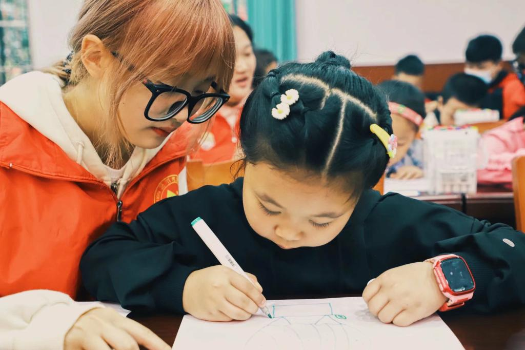 “e+1”四点半课堂关爱城区留守儿童志愿服务专项支队主要是通过“一对一”帮扶的形式对留守儿童进行关爱,以辅导儿童作业为主,将社区因家长工作繁忙的孩子组织起来,集中进行学业、心理、行为上的辅导。志愿者们可利用自身特长以及学生社团资源,在小朋友课业之余增加一些乐趣,通过折纸、绘画、实验、体育等小课堂来打开孩子们的心扉,帮助其培养兴趣爱好,让其更好的成长,正确引导儿童培养健康向上的良好习惯,并且引领儿童更好的散发思维、认识世界、拓宽眼界。