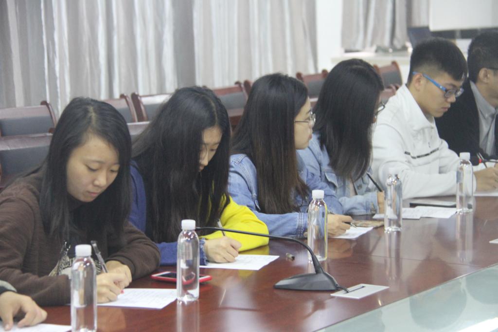 在学生干部交流环节中,双方分别对本校名师课堂学生组织的组织结构和各部门的工作内容及进展情况做了介绍。各部门部长对于自己部门的管理方法和工作方案进行了更全面的阐述和更详细的讲解,特别是在海报张贴问题和杂志出版问题上,进行了深入的探讨。