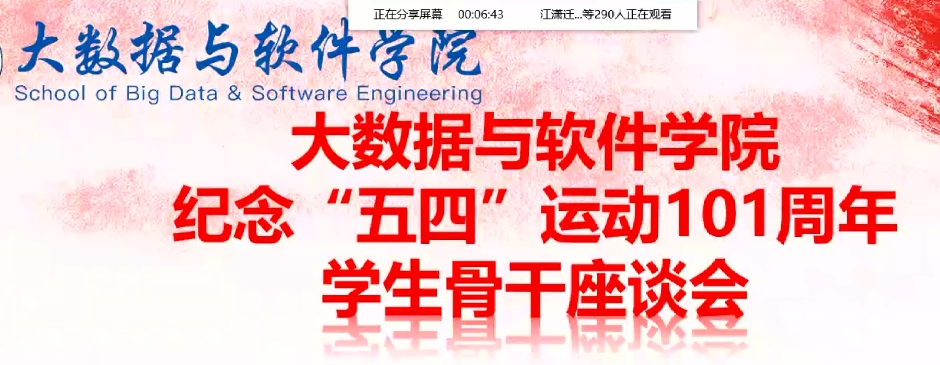 经过一下午的学习,教师们纷纷表示要牢记五四精神、做好马克思主义的真传人,要以习近平总书记和马克思为榜样,以青春之我、奋斗之我姿态投入到教育工作中去,为新时代不断贡献自己的力量!5月6日19点,李阳老师更是将本次会议的学习收获带到了学生中,在受邀参加的大数据与软件学院纪念“五四”运动101周年学生骨干(线上)座谈会上他对五四精神,从马克思主义的角度进行了深入浅出的分享,鼓励我校学生在总书记的号召下更好地“树理想、爱祖国、担责任、勇奋斗、练本领、修品德”。