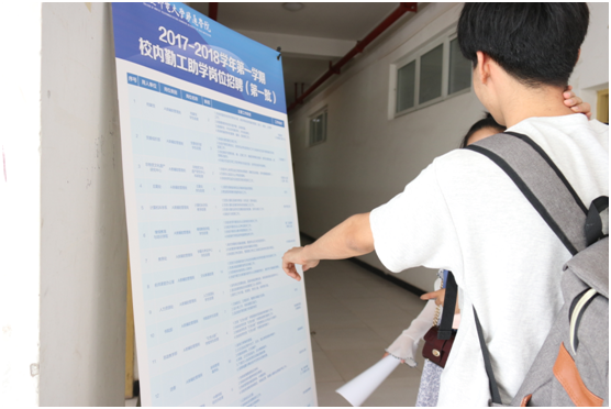 9月8日起,我校2017-2018学年第一学期第一批校内勤工助学岗位招聘报名工作于在线上线下同步进行。本次勤工助学岗位招聘会由学校学生资助管理中心主办,勤工助学中心承办,招聘面试工作于9月18日圆满结束。