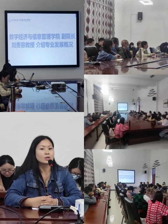 为了帮助老师们更清晰学院专业特色和研究方向,数字经济与信息管理学院刘贵容副院长为各位异科导师介绍了学院专业发展的基本情况,不同专业学生的培养现状。以专升本班级和本科班级两个方向为异科导师出谋划策,让老师们能够更快的了解学院,带好学生。