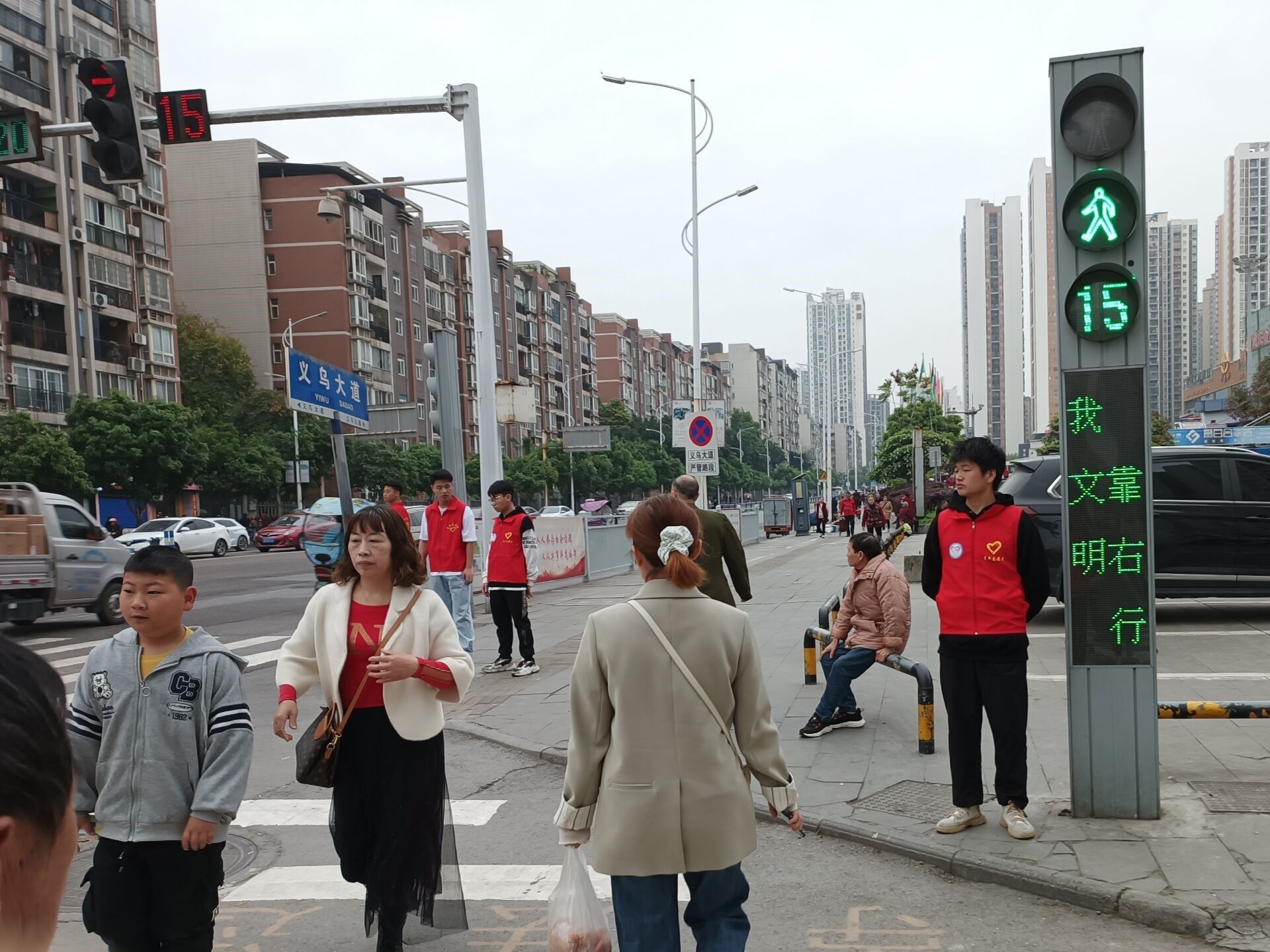 知晓交通规则,遵守交通礼仪是确保大家生命安全的重要一步。为了自己的生命安全,更为了不给国家、社会和他人添麻烦,智能工程学院青协“知交规,行安全”交通文明志愿服务专项支队协同合川区交巡警支队在多地开展交通文明劝导活动。志愿活动期间,支队长给各位志愿者安排站岗,让志愿者们更好的维持交通秩序。在活动中,志愿者们向一些交通安全意识薄弱的群众讲解一些基础的交通规则,与大家一同创建文明安全的出行环境。