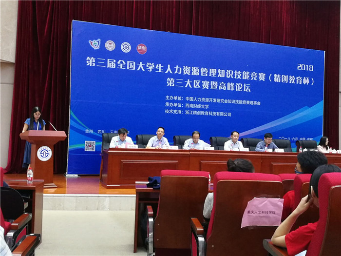 本竞赛分为大区赛和全国总决赛。2018年6月1日到6月3日,我校由陈娇老师带队到西南财经大学柳林校区弘远楼参加第三大赛区竞赛。第三大赛区队伍来自云南、四川、贵州、重庆四大省或直辖市,总计54支队伍。本赛区邀请了西南财经大学任旭宁、华为人力总监蔡琳、精创公司人力总监杨燕等嘉宾从学校、研究会、企业三个视角来探讨人力资源管理教学。