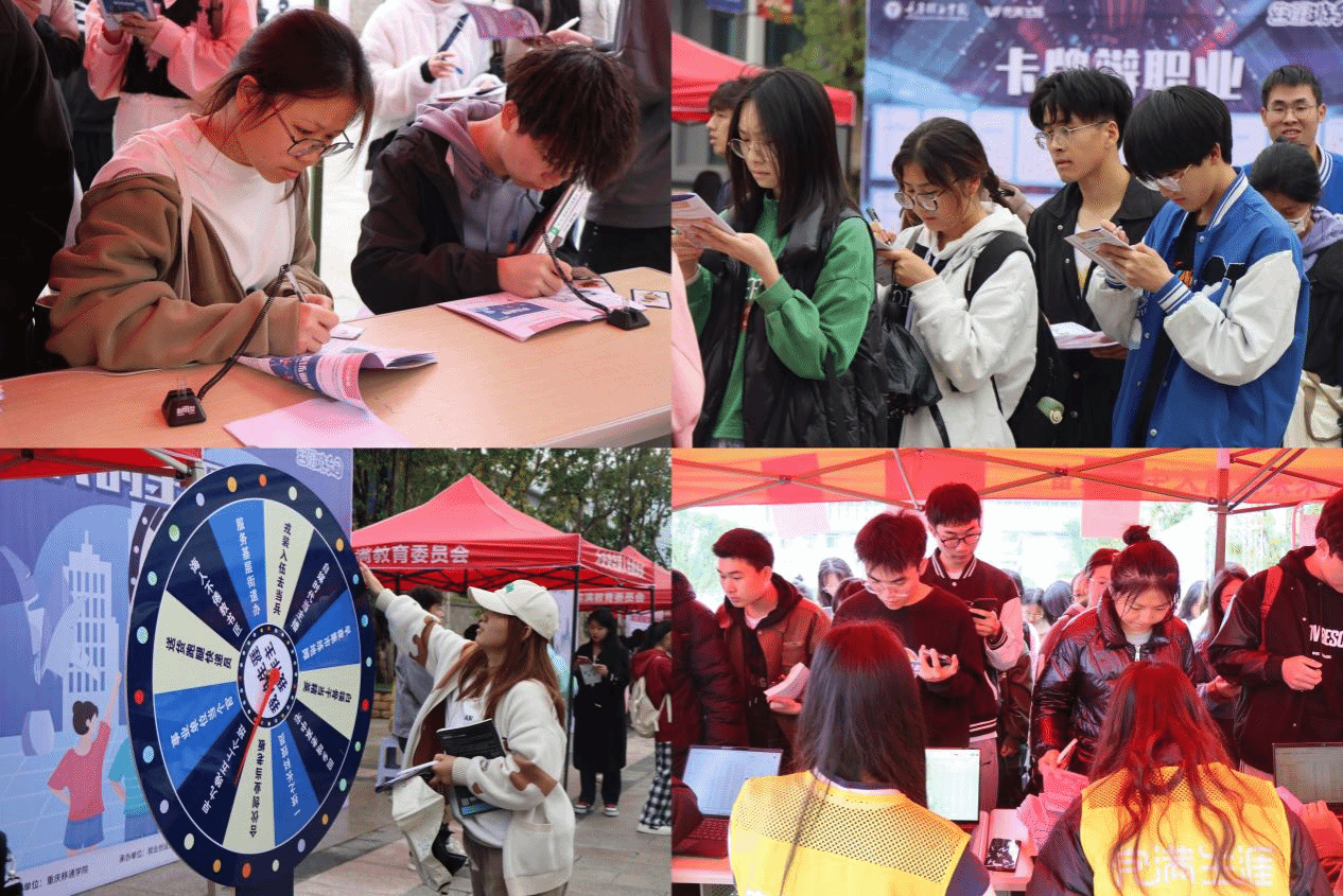 为助力移通学子更好地树立职业生涯规划意识,2023年3月20日,由学校主办,就业创业指导与服务中心与共青团重庆移通学院委员会共同承办的綦江校区首届“职场节”之”生涯游乐园”活动完美收官。本次活动吸引了3417名学生参与,通过问卷调查发现参与者对活动安排的整体满意度高达97.43%,我校就业创业指导与服务中心副主任佘桂隆,就业创业指导与服务中心主任助理杨德龙老师也亲临现场指导工作。