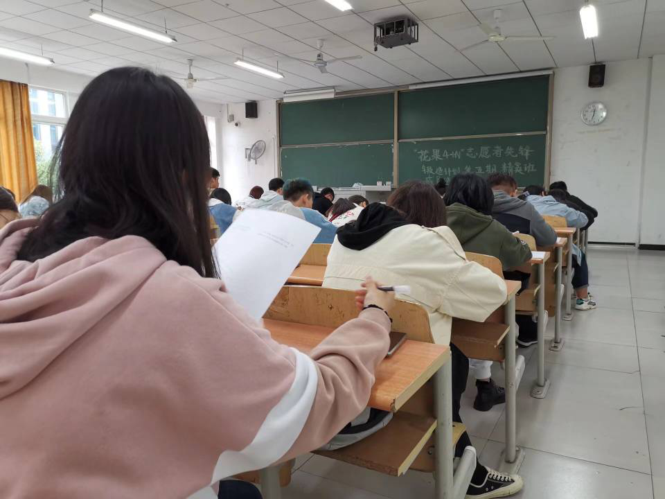 为贯彻落实中央文明办、共青团中央等一系列关于志愿服务工作的意见和指示精神,进一步深化学校“完满教育”育人理念,着力提升大学生志愿者的综合素质,加强志愿者们的服务技能,使志愿者更好地具备团结协作能力、创新开拓能力、组织管理能力,培养志愿者骨干,进一步推进志愿服务专业化、制度化、规范化建设。10月15日12:00“花果4+N”志愿者先锋锻造计划第五期精英班选拔在第五教学楼5101举行,校院两级志愿服务组织、各志愿服务专项支队、各公益类社团和其他志愿者骨干共100余名学生参与此次选拔笔试。