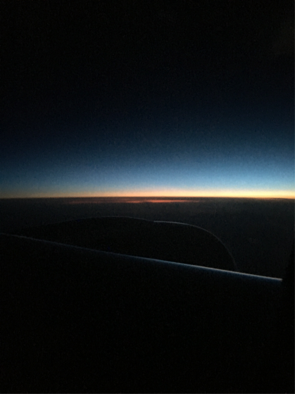 (图一:飞机上刚好追到美国的太阳)