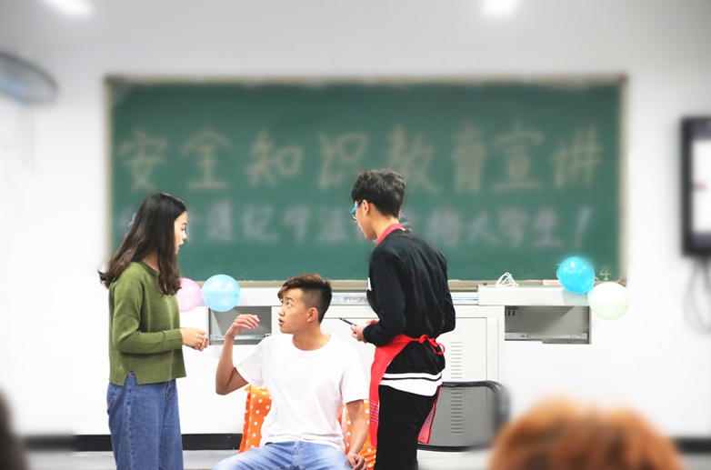 宣讲会通过小品演绎、案例分析、自由讨论三个环节让同学们在幽默诙谐的情景剧中见证了骗子通过电话诈骗的惊人手段,在“掏鸟案”、“女大学生与出租车司机争执被杀”等活生生案例中深入反思。