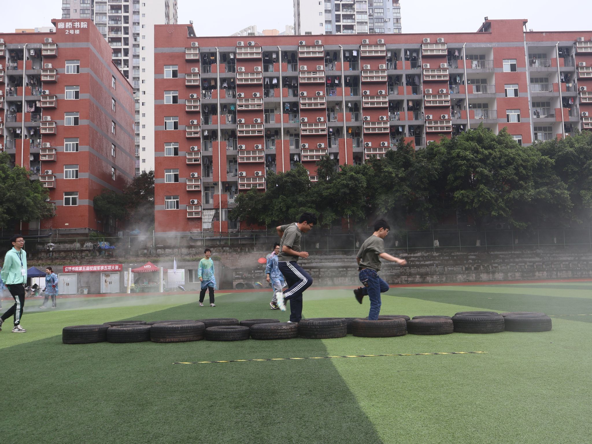 校园军事五项大赛脱胎于国际军事体育理事会的传统竞赛项目“军事五项运动”,包括“500米障碍赛跑”、“投弹”、“8千米越野跑”等5个项目。2018年,廊桥书院结合决策力,将“军事五项运动”校园化,加入战术制定环节,通过“圆木接力”、“精准投掷”等团队项目的比拼,让移通学子足不出校即可接触到合川区规模最大、历届参与人数最多、最具决策力的校园军事类大型军事实践活动。