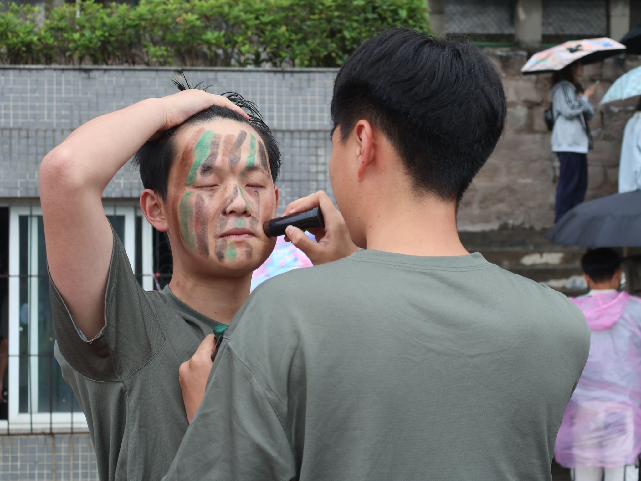 22日下午,迎着蒙蒙细雨,9支参赛队伍来到南校区足球场,拉开了第五届校园军事五项的序幕。国防教育展架、征兵宣传海报、作战指挥中心、水弹发射器、迷彩布装饰的办公桌,每一位参赛队员都被现场浓厚的军事文化氛围所感染,纷纷拿起手中的迷彩油开始在脸上涂装迷彩!