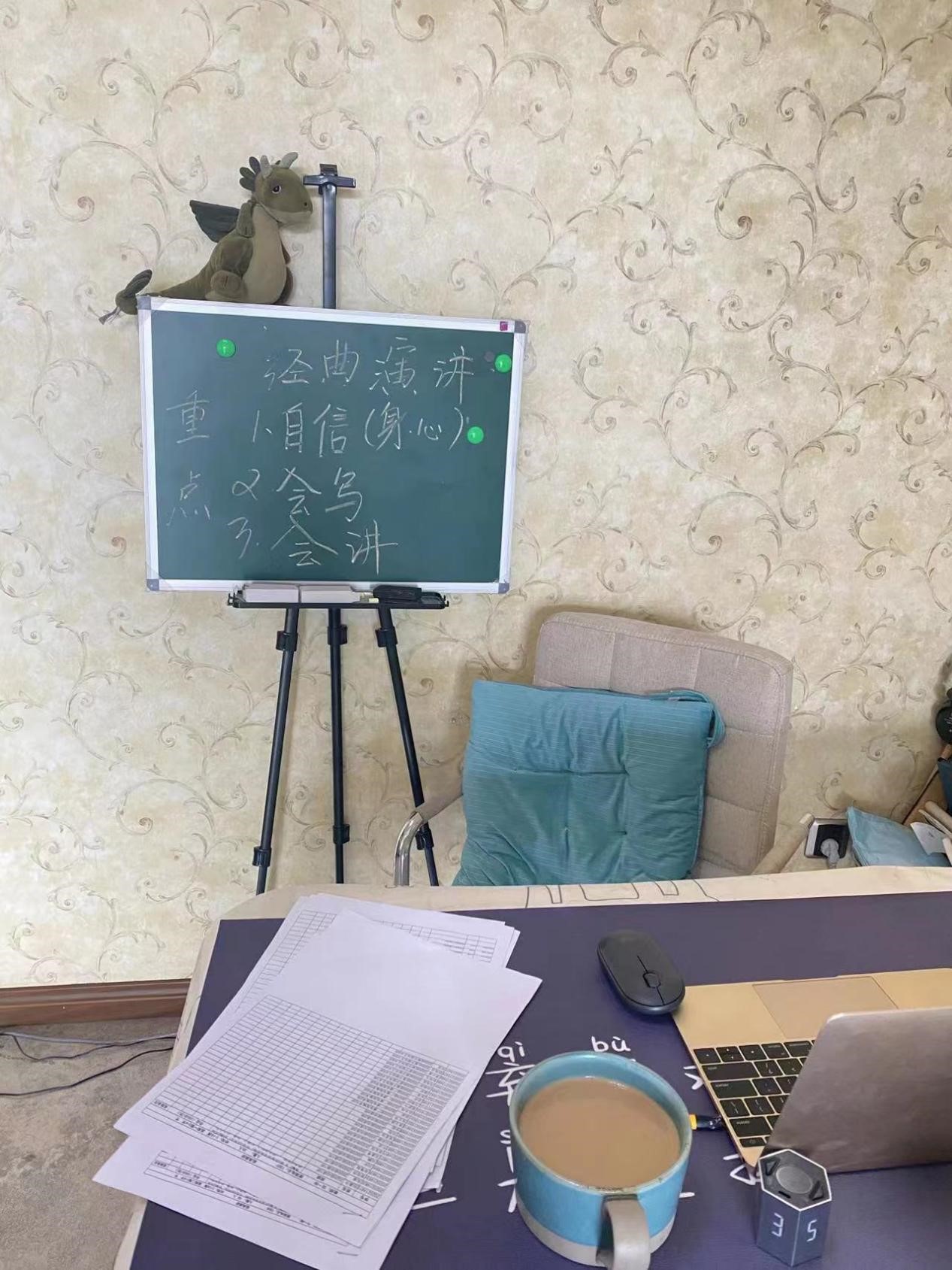 (创意写作学院田一洁老师精心布置的网课直播间)
