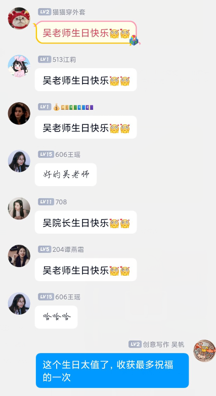 (花果一号楼小仙女们对吴帆老师的生日祝福)