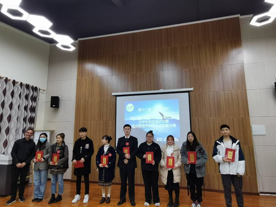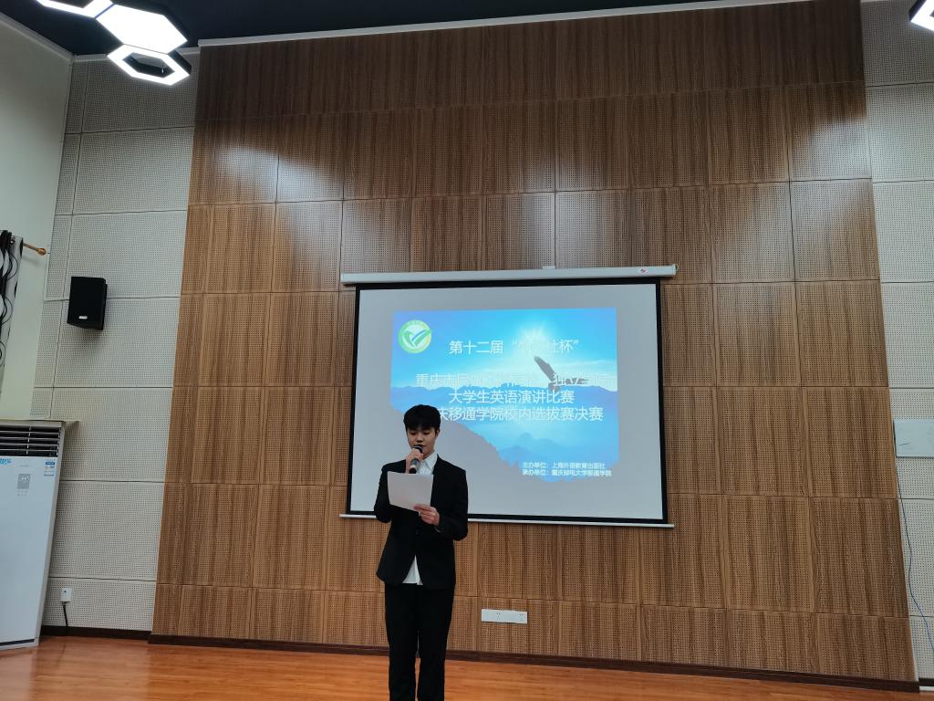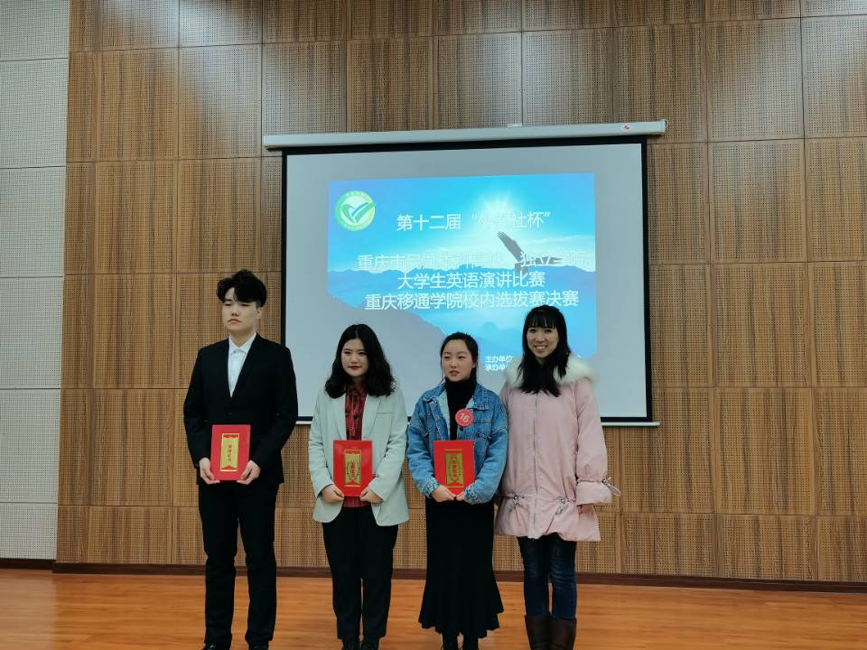 为推动我校学生英语综合应用能力的提高,实现“以赛促学、以赛促用”,丰富大学生英语实践活动,营造校园英语学习氛围,并选拔优秀人才参加重庆市级比赛,第十二届“外教社杯”重庆市民办本科高校/独立学院大学生英语演讲比赛校内选拔赛决赛于11月26日在外国语学院天渠报告厅如期举行。