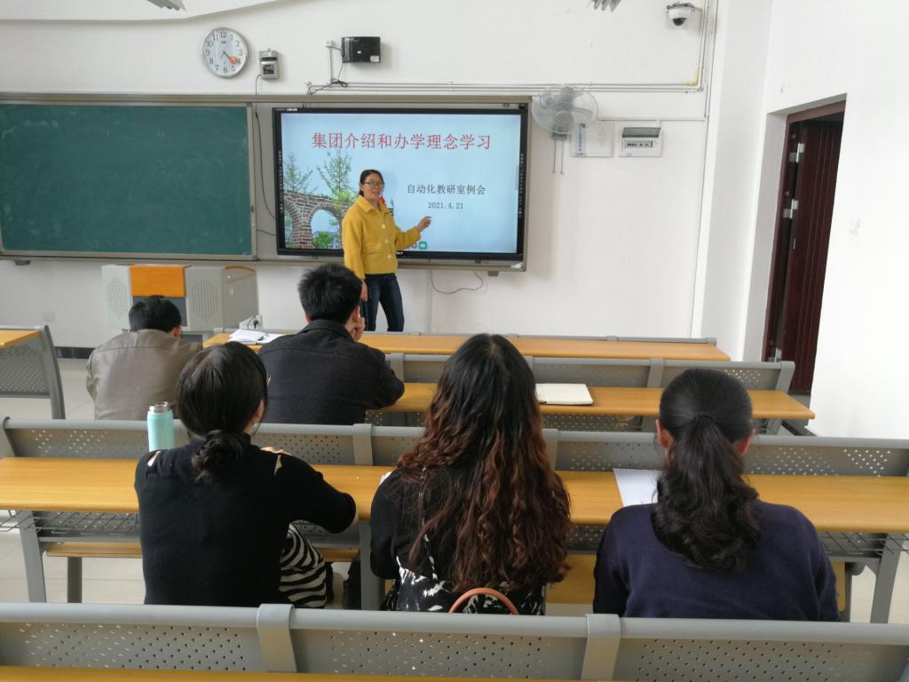 电气工程教研室以讨论的方式深入学习集团介绍和办学理念,其中杨佳义老师讲到:“应努力培养学生的专业自信心、学校自信心,要让学生知道我们是信息产业人才培养的摇篮。”陈龙灿老师在交流中谈到,我们要鼓励学生参加课程设计、学科竞赛,引导学生探寻兴趣区域,区别其他重理论的研究型大学。