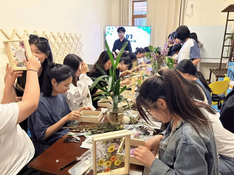 当鲜花变成干花,是又一个浪漫故事的开始,把浪漫与新意镶嵌在相框之中,封存春意,记忆永恒。花开短暂,花期正浓,春意盎然,时光步履匆匆,为了让同学们真切感受艺术与植物的碰撞,感受花艺的魅力,亦在五一来临之际,结合远景特色通识博雅育人,为美育教育搭建实践平台,培养学生劳动实践能力,引导同学们以品质传递幸福,将美育贯彻生活。4月19日下午14:00,远景书院邀请半亩花田工坊指导老师:陈春彦、谭星、向小雪老师一同在远景书院113工坊举办了“框定花开每一刻,留存手作芳香语”干花相框DIY活动。