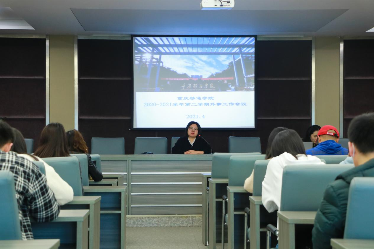 为进一步提升我校外事工作服务水平,加强我校外事工作队伍建设,推动我校国际化稳步向前发展,4月6日下午,我校2020-2021学年第二学期外事工作会议于行政楼A栋601会议室召开。国际处副处长毛敏,国际处外事专员韦橙橙、向金梅,以及各二级单位外事工作联络员参与本次会议。