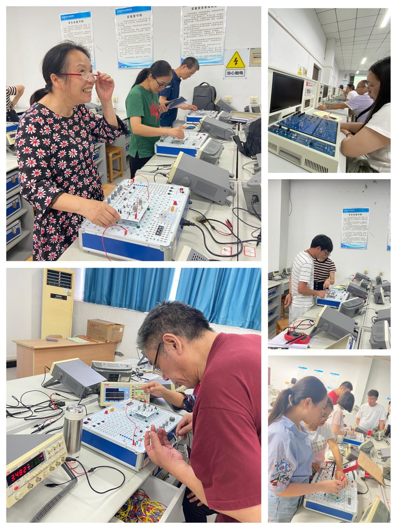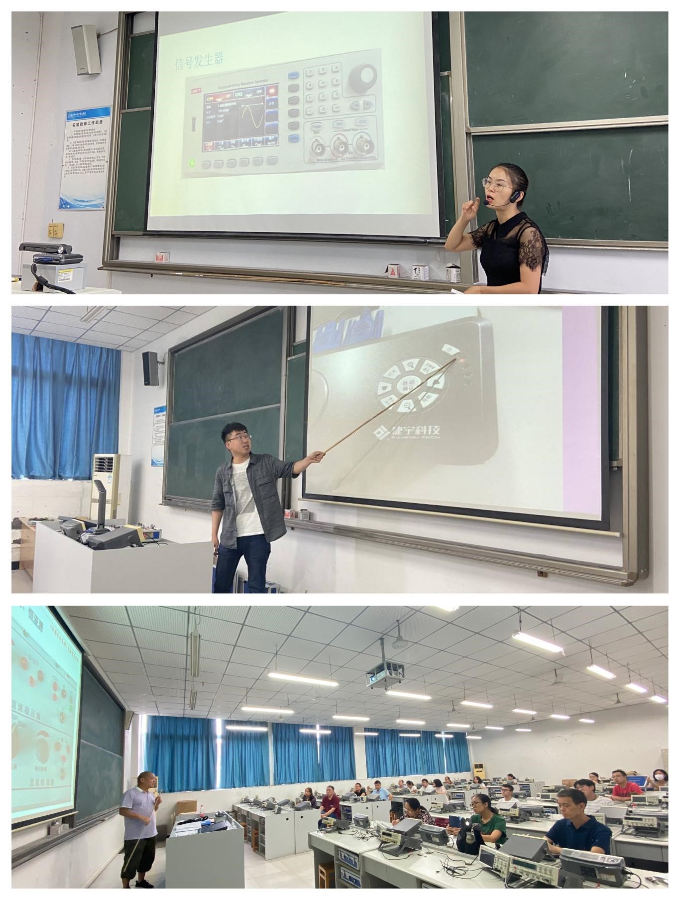 本次活动主要由三个部分组成,第一部分为高鹏老师于9月5日在第一实验楼S1501进行的电路分析实验课程培训,第二部分为鲜娟老师于9月8日在S1501 进行的模拟/数字电路实验课程培训,第三部分为莫文中老师于9月15日在S1501进行的电工电子实验课程培训。在培训过程中,三位主讲老师分别为大家介绍了实验室环境、常用的实验仪器和仪器使用的注意事项,并对实验课教学过程中学生常出现的问题进行了重点介绍,最后结合各课程的特点,有针对性的选取了部分实验进行了完整的实验过程展示、分析了实验现象。