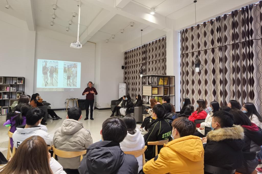 为进一步打造书院“外语学习兴趣圈层”,为同学们提供口语练习的实景场地,12月16日,国际交流与合作处与外国语学院联合举办的第二届ABC训练营之“我与外教有个约会”第五期在天渠书院阅览室顺利举办。外教Clive主要围绕“在中国之旅”、“英国的特色风貌”、“不同国家的美食”三个话题为同学们带来了一场精彩且有趣的分享会。国际处向金梅老师和外国语学院杨沁霏老师也一同加入了这场英语口语实景训练。