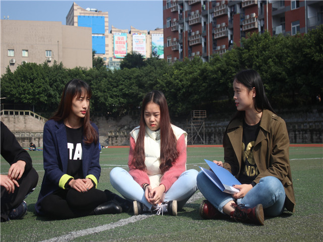 两横一竖“干”,两点一力“办”。2016年11月11日中午,在温煦的阳光下,我们与舞蹈分团一起围坐在绿茵球场上,分享着他们成长的故事,一起追逐梦想的脚步。
