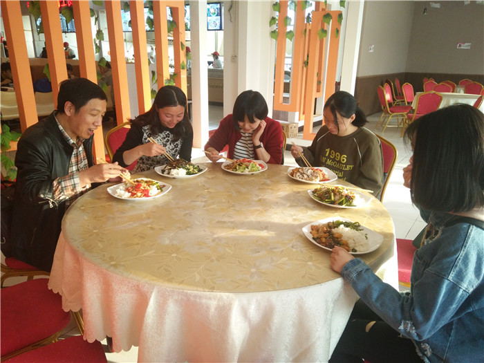 时光在愉悦的氛围中悄然溜走,丰富的精神食粮还是不能客观满足大家对食堂可口饭菜的需求,同学们最后跟随吴主任来到了食堂,一起共进晚膳。看着眼前这位对待教学认真,生活态度积极向上,性格豁达开朗,与学生相处时毫无陌生感的吴老师,同学们在那一刻也许都能感受到那份来自老师内心对大家未来的由衷祝福,也用实际行动向大家证明着坚持和积极向上的力量。
