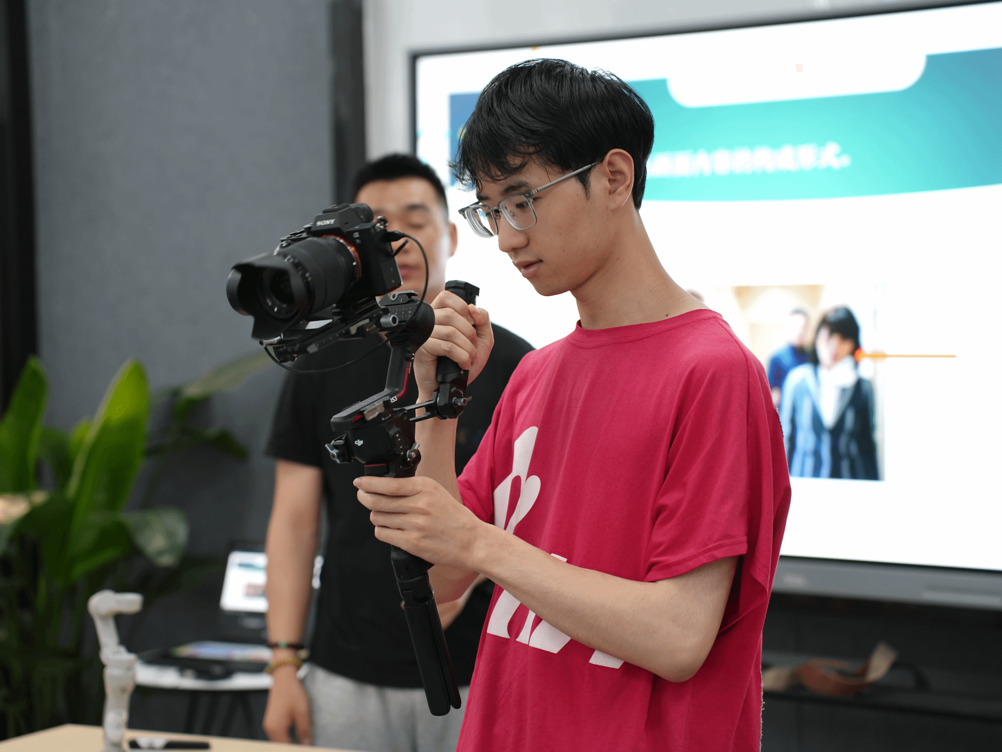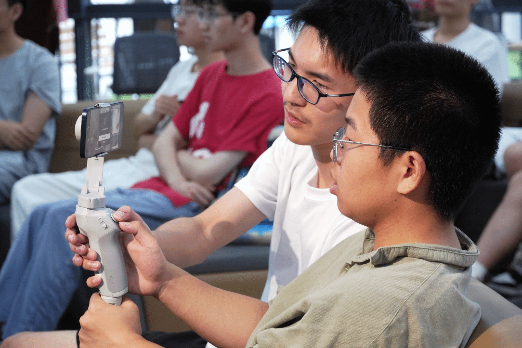 “三脚架是最为常见也最容易上手的稳定器,其次是手机云台和相机稳定器。稍后我会逐一为大家演示这三种不同设备的使用方法,感兴趣的同学也可以上前来亲自体验。”