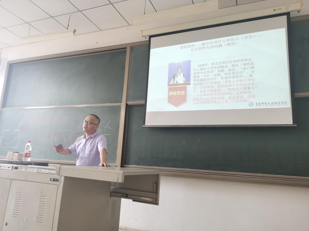 之后,邹老师回归教学本质,用“五个讲”分别是“照着讲、接着讲、活着讲、特着讲、引(潮)着讲”,其本质是吃透教材体系,形成教学体系,阐述了教学中如何能更好将专业课与思政课融合,使学生更能在这种隐性教育中接受思政教育。邹老师独到的见解使我们参会的老师受益匪浅,对今后的教学工作有了一个很好的指引作用。
