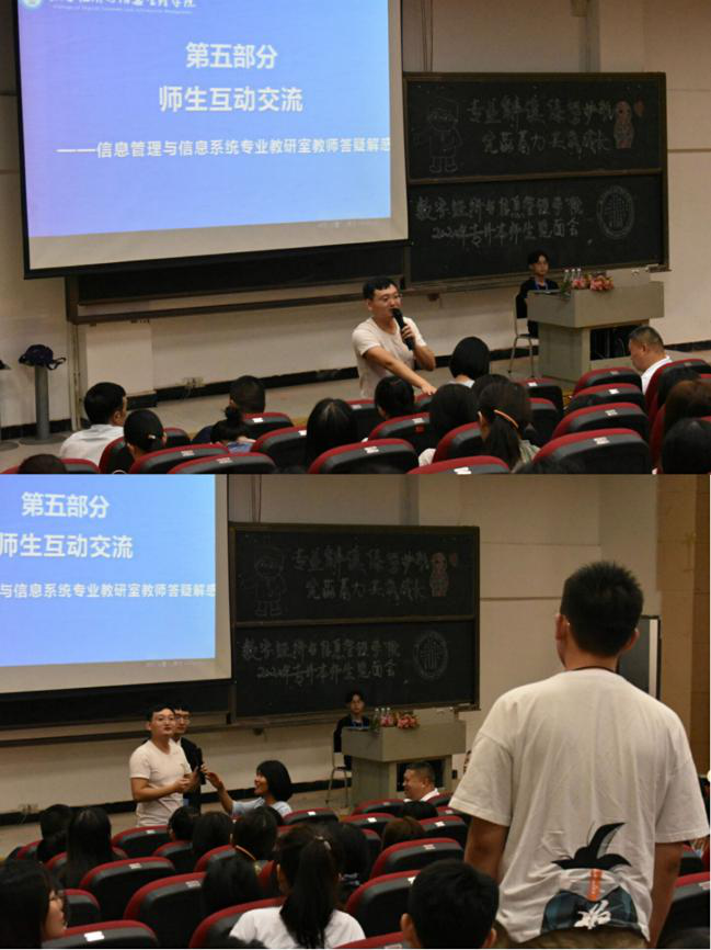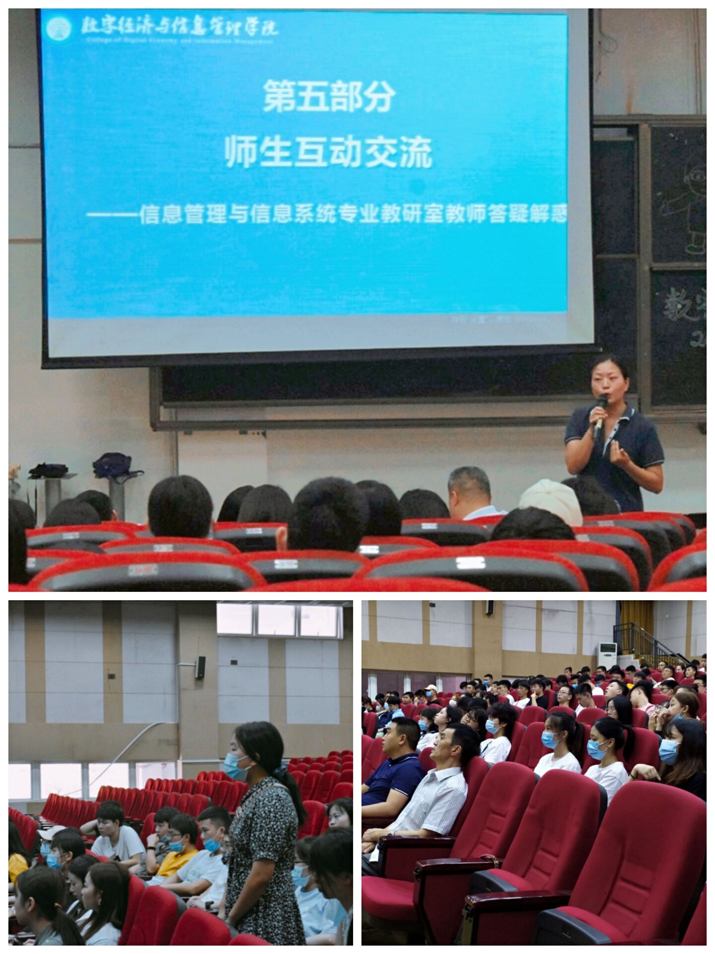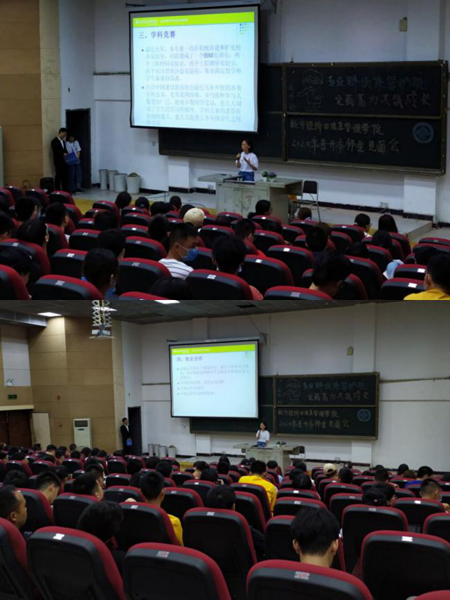 初来乍到的新生们对自己的专业以及以后的发展肯定存有疑惑,为了能有效地帮助学生们解答疑惑,学院邀请到我院副院长刘贵荣教授、信息管理教研室主任王哲老师和工程管理教研室主任周梦娇老师来为新生作专业的解答。同学们比较关心考研、考证、就业前景、学分等方面的问题,积极举手提问,老师们也耐心回答,帮助同学们解决问题。