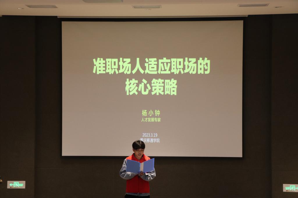 此次志愿服务活动特别邀请到上海复旦大学管理学硕士、人才发展专家、上海就业指导中心专家杨小钟老师莅临我校开展就业综合软实力线下培训课程。杨小钟老师以极限挑战里“人生起跑线”的游戏拉开本次培训的序幕,再从“肖申克的救赎”到刘润、樊登二人的推荐,杨老师用简明扼要的言语、幽默风趣的方式让现场同学们能更形象地理解到职场必须掌握的核心能力及掌握适应职场的基本策略。为在校大学生了解未来职业面临的真实环境,明白职场必须掌握的核心能力及掌握适应职场的基本策略方法做出了指导。
