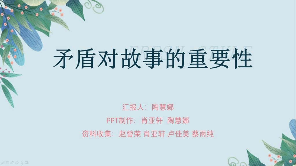 吴老师对同学们的现场创意一一做了分析,指出这个故事的爆点在哪里,那个故事暗藏深意等等,最后她总结说“故事=人物+情节”,但是若要让你的人物动起来,只需要朝毫无波澜的情节开一枪,这一枪——就是矛盾。人物+情节,中间的加号就是矛盾。矛盾是推动故事情节的驱动力,是引发人物转变的必要途径,没有矛盾,就没有故事。