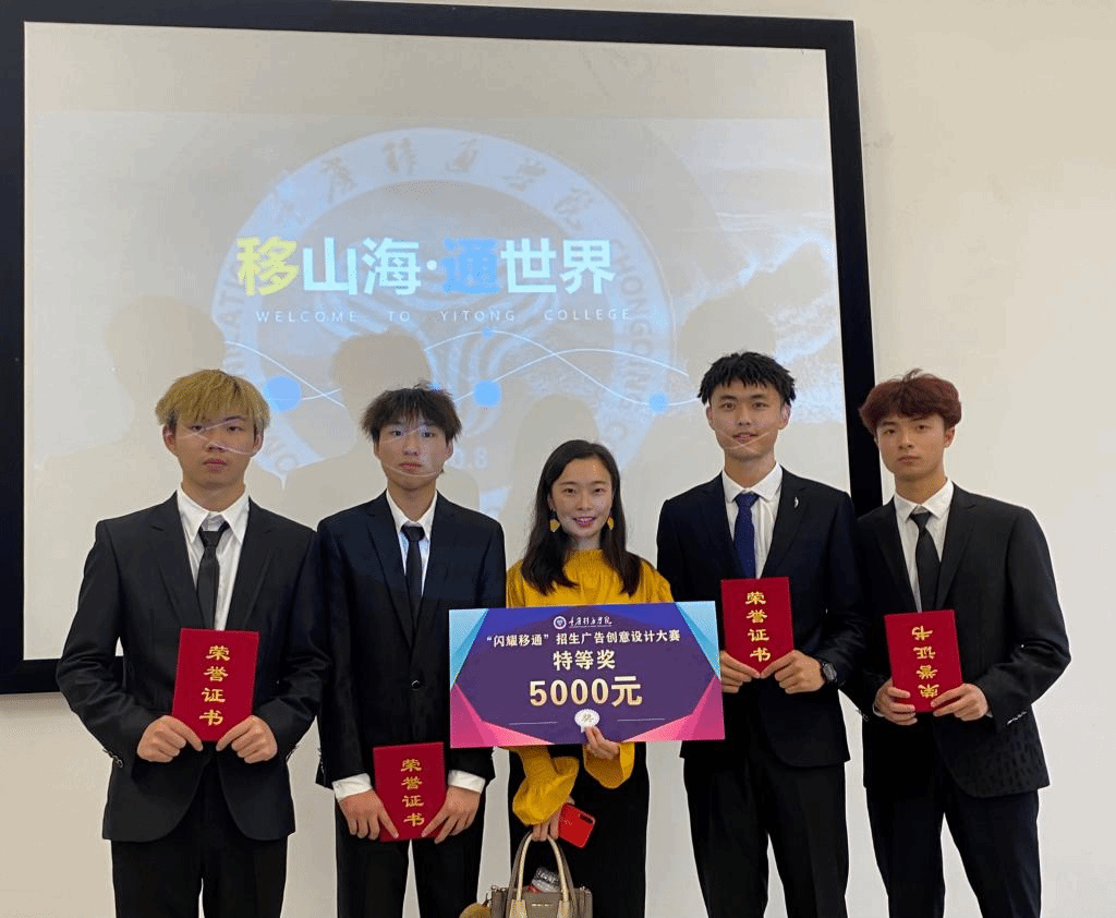 6月9日下午14:00,重庆移通学院第三届“闪耀移通”招生广告创意设计大赛决赛在学校梅若书院举行,中德应用技术学院代表队七龙珠组制作的视频《移山海,通世界》,从20只决赛队伍的参赛作品中脱颖而出,斩获本次比赛特等奖。该作品由我院双语教研室陈燕骄老师指导,小组成员由我院2020级学生王弘玺、陶佳诚、余沂飞、周永森、梁小龙和何家豪组成,队长为王弘玺。
