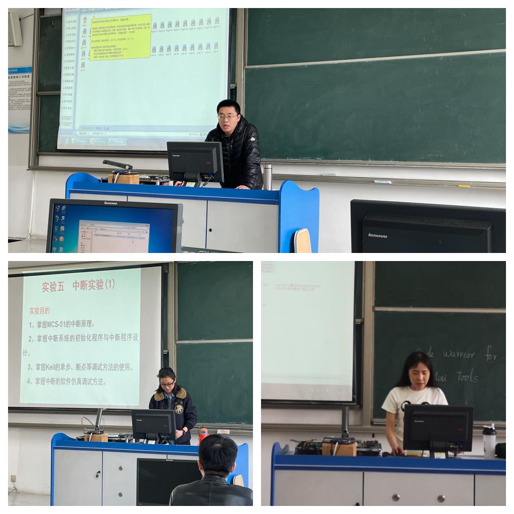 教研室邀请高勇、陈俊霖、董妮娅三位老师结合三门课程,详细讲解了课程内容安排、仪器仪表使用方法及操作安全注意事项。3月2日第一场交流会上,首先介绍了微处理器类课程中所用硬、软件,其次就讲解了按键、查表指令、数码管显示等理论知识、实验操作内容;3月9日第二场交流会上,讲解了课程中对于学生理解操作较难的中断以及定时器的理论知识、实验操作内容;3月16日第三场交流会上,针对ARM开发环境、串口通信、实时时钟和看门狗的理论知识、实验操作内容做了讲解。