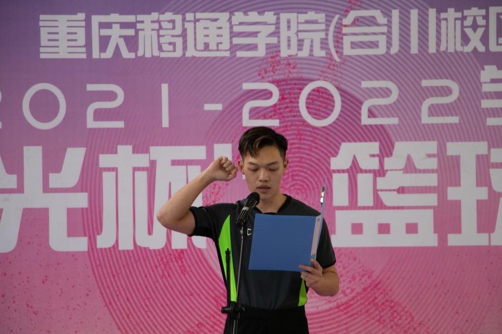 随后进行开幕式第五项,由主办方竞技体育中心代表学生体育联合会执行主席张治民及竞技体育中心训练部球类教研组组长、校女篮教练曾佳对“阳光杯”系列篮球赛事致辞,她们表示希望通过此次“阳光杯”系列赛事加强大家对体育赛事的关注及对体育赛事的热爱。同时也在精彩言辞中包含了对本次“阳光杯”系列篮球赛事的期待与祝福。在礼炮声中,竞技体育中心训练部球类教研组组长、校女篮教练曾佳宣告本次2021-2022学年“阳光杯”系列篮球赛正式开始!