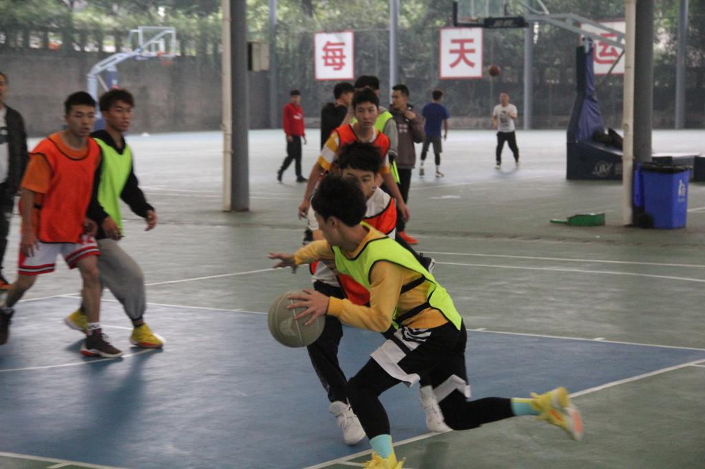 奔跑的青春在篮球场奔腾绽放,映入眼帘的是1号场地的北山书院1号楼116寝室,他们错位防守,牢牢地盯着对手中的篮球,反观手持篮球的同学弯着腰,来回踱步运球,寻找着“突围”的机会。突然10号球员加快了步伐,轮转换位,来到篮板下,一个虎跳转身投篮,篮球不偏不倚地落在筐内。