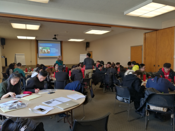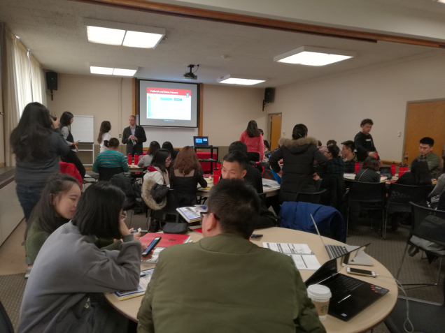 在丰盛的午餐后,下午由资深国际教育专家Pierce教授给我们带来了一堂精彩的课程。Pierce教授利用大量生动的案例,深入浅出的讲解了美国高校课堂文化,和我们一起讨论和对比了中美课堂的异同点,以及介绍了美国课堂的种族多样性。在这堂课上,老师用多种方式和学生互动,开放的教学空间,活泛的教学思维,和中国高校的灌输式教育形成鲜明对比。
