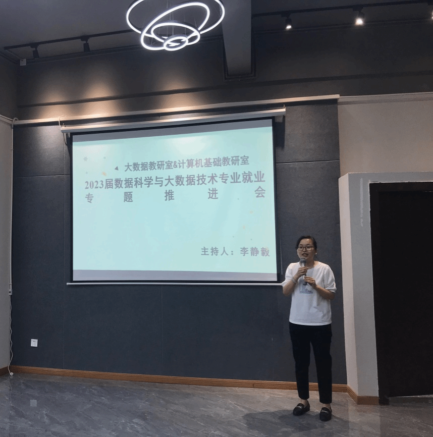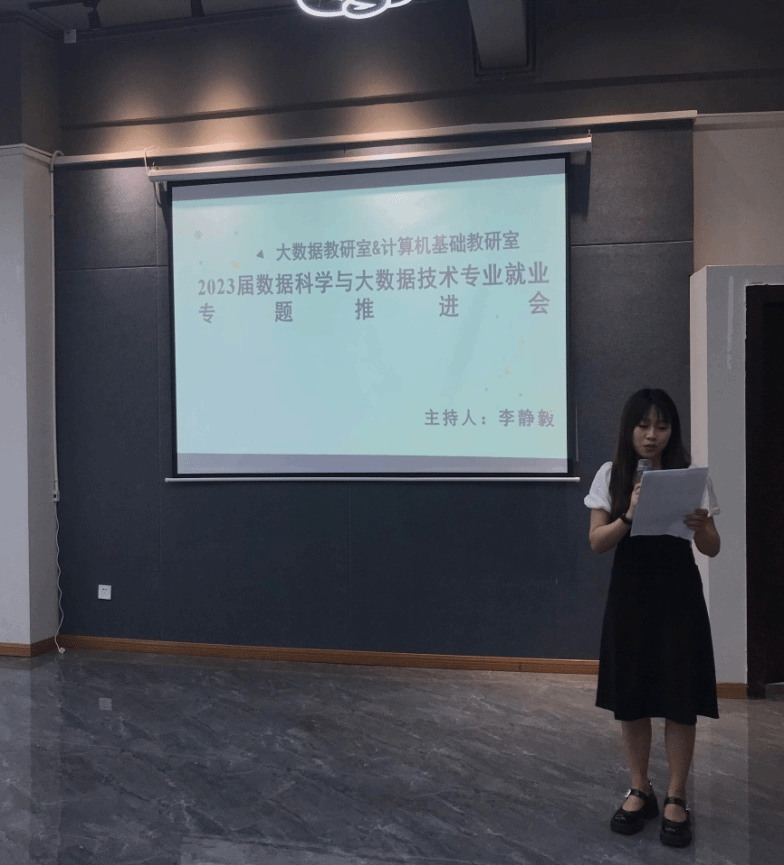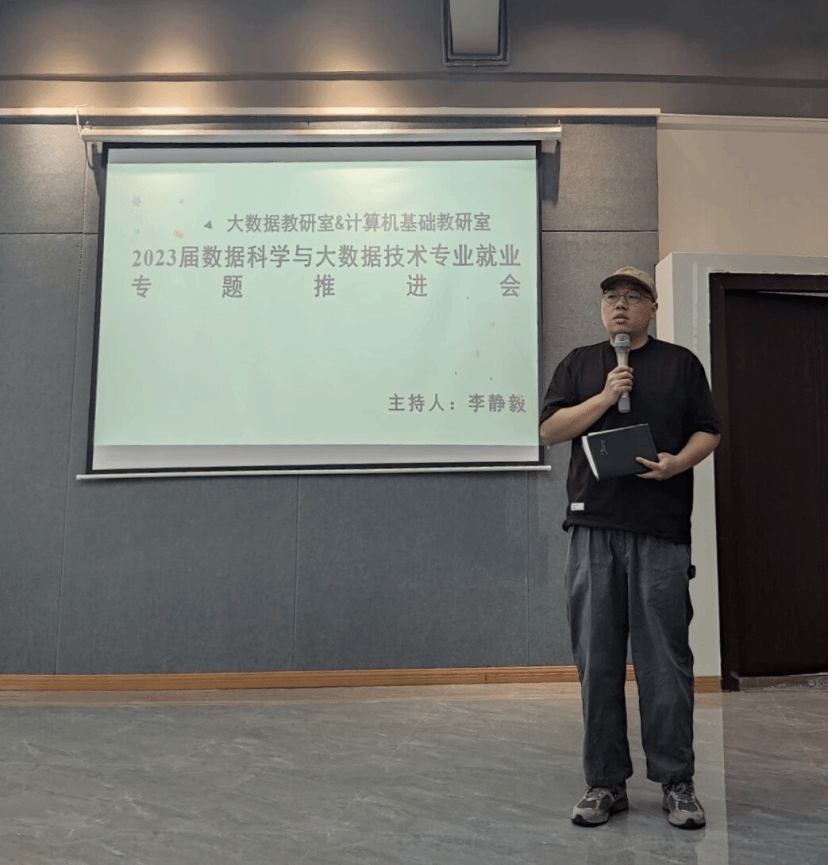 本次会议由大数据教研室主任李静毅老师主持,计算机基础教研室主任吕云山老师、数据科学与大数据技术专业毕业班辅导员马喆老师、吴素虹老师以及大数据教研室、计算机基础教研室全体成员参加本次会议。