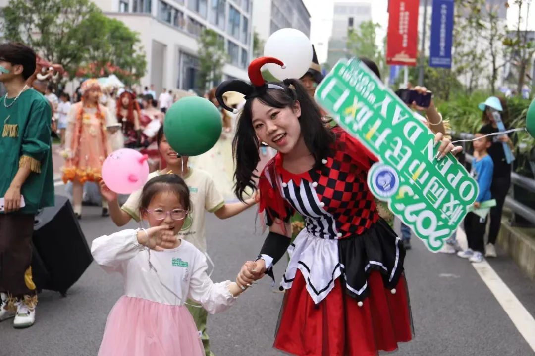恰逢学校2023校园戏剧节之际,学校在开放日中融入戏剧元素、音乐、肢体等元素,开展原创舞台服饰、夸张戏剧服饰、国外戏剧服饰、中国汉服服饰、儿童剧目服饰五大巡游方阵,共计百人参与巡游。邀请入校市民家庭亲身参与,体验移通特色“素质教育”成果,市民们纷纷赞叹在大学也感受到了迪士尼的气氛。