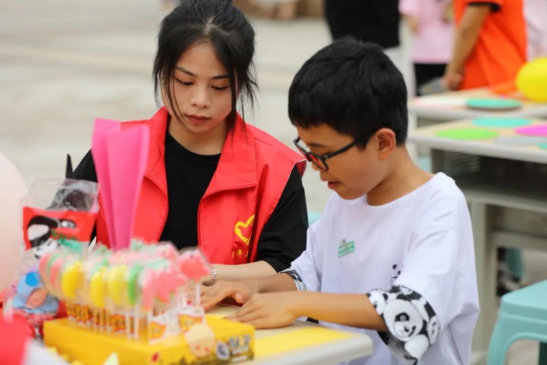 下午15时,来自綦江区各界的市民朋友陆续到学校,检票入场。240名志愿者蓄势待发,为到访市民贴心送上导览图和定制伴手礼,引导来访市民前往校园内精心设置的打卡点打卡、参观。同学们有的化身讲解员,为市民热情介绍书院空间;有的化身童话故事里的主人公,带领小朋友们一起嬉戏玩耍;亦或是成为了小食摊主,为市民朋友送上亲手制作的美食……