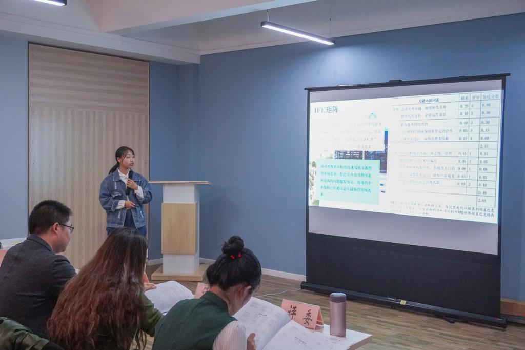 各队选手代表针对行业及企业现状,从市场运营模式、人力资源、财务成本等角度进行分析,激情澎湃的答辩中蕴含着集体智慧的结晶。