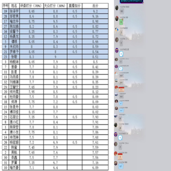 经过一个半小时的激烈角逐,选手们顺利完成了比赛。经过评委和大众评审的综合评分,选拔出了排名靠前的10位选手进入决赛。晋级的选手将会在决赛有更精彩的展示,落选的同学也没有因此气馁,正如来自2018级大数据专业的曾徽同学所说:“选择参加本次主持人大赛是想锻炼提升一下自己,作为一名学生干部在讲台上讲话是必不可少的一个环节,有这样一个舞台可以让我锻炼,我一定要抓住机会。”我们期待落选的同学来年再战!