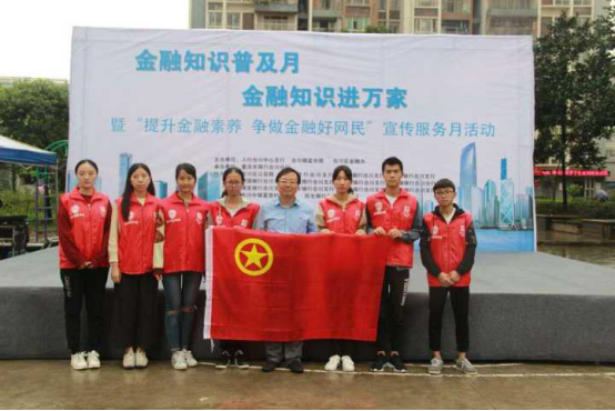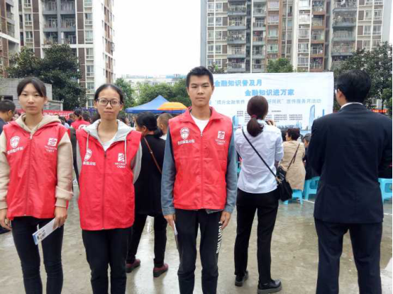 9月28日上午,为响应我国十九大的号召,由中国人民银行合川支行、合川银监分局以及合川区金融办联合合川区十几家银行在公租房小区北城佳菀举办了“金融知识普及月、金融知识进万家暨提升金融素养、争做金融好网民”宣传服务月活动。我校志愿者荣幸受邀作为青年代表在当天上午九点前往活动现场参与该活动。