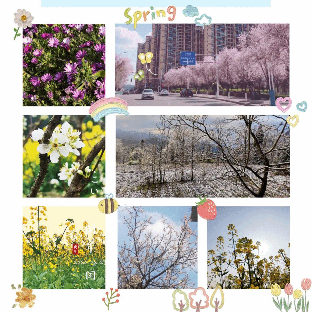 2020的春天对大家来说很不同,虽然这一年的疫情还没有结束,但大家对生活的热情并没有消减半分。拍摄“2020春天”活动开始后,2018级电信工程及管理1班的同学们都踊跃的参与其中,上传了很多这个春天的足迹。在大家上传的作品中,依然可以看到这个五彩斑斓的春天。在大家分享的照片中,最多的便是花,梨花,油菜花,桃花,野花,应有尽有。其中最特别的便是那朵还未开的小花(草莓花),这是同学前不久自己种的,虽然还未开,但浇灌草莓的春雨还混合了悉心的呵护,所以在众多花花中格外的有意义。花的姿态在春天恣意绽放,空中响彻着春的乐曲,给2020年瑟瑟的世界一个暖暖的美景。01161801团支部,借春日照片,传递青春活力。