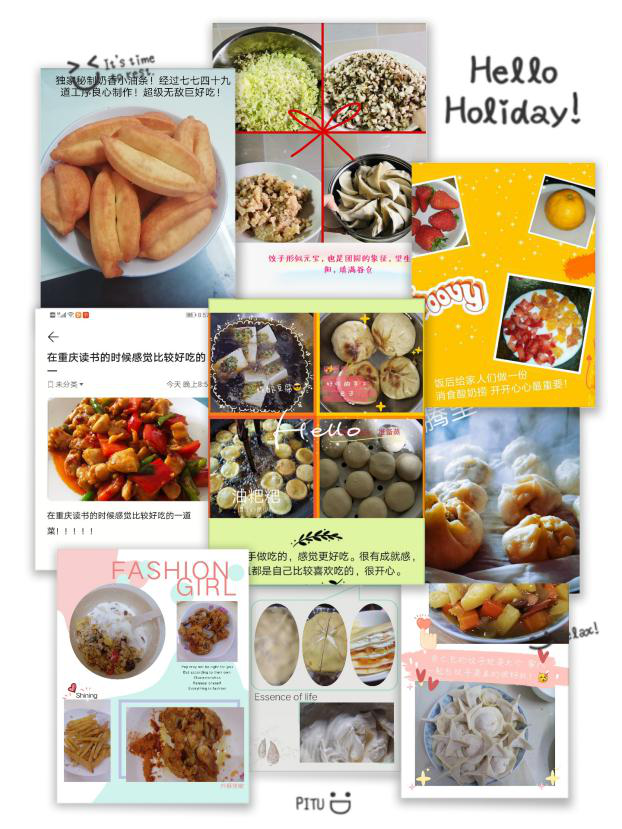 2018级电信工程及管理3班开展了以在家厨艺秀为主题的班团活动。同学们“各显神通”,做的菜都各有千秋,有热气腾腾的包子和饺子,有代表团团圆圆的小蛋糕,有让人馋涎欲滴的家常菜,有解闷必备小零食,油炸食品薯条炸鸡等等。那些照片都是各位同学辛苦付出的结果,在制作过程中也会遇到各种问题,食材搭配的选择、比例、火候等,都需要各位同学去钻研。同学们在展现提升自身厨艺的同时,也为自己的亲人做了一顿爱心“大餐”,感受到了父母在家做饭时的耐心与深藏其中的爱意。珍惜现在的时光,学会感恩,多与自己的家人团聚,做一些事情回报父母的恩情。