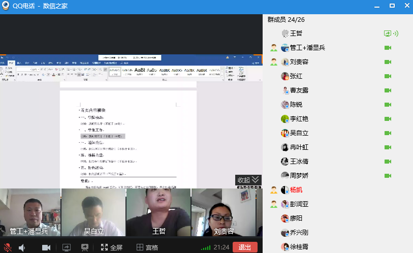 同时,学院副院长刘贵容老师及杨凯老师对本月教学常规工作、非常规工作、信管特专建设等工作要点做了详细总结。刘老师提到根据学校要求,请各位老师认真查阅群里转发的督导简报及相关教学文件,落实线上教学质量及效果,注重多元化的教学方式组合教学重点内容,使学生学有所获、学有所长。本月我院教研教改项目的申报及报送工作值得鼓励,也感谢各位老师对招生工作的真诚付出,相信在全院教师的共同努力下,后续工作会更好。同时,刘老师也强调了后续相关重点教学工作安排。杨凯老师围绕学生复学后的防疫相关工作、毕业生就业情况、近期学工工作等做了细化总结,同时建议任课教师可与辅导员教师合作开展学业导师活动,提高学业导师的辐射面及意义。