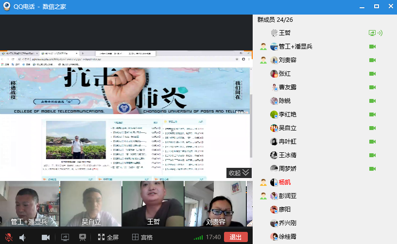 疫情期间,为进一步加强我院师生防疫知识的宣传及学习,确保师生能以最佳状态迎接复学工作,2020年3月25日下午15:50-16:20,数字经济与信息管理学院全体教师通过QQ视频会议,开展了“齐心协力抓防疫,团结协作备复学”的主题会议,同时学院相关领导也对学院现阶段工作做了总结,并对后期工作作了详细部署。